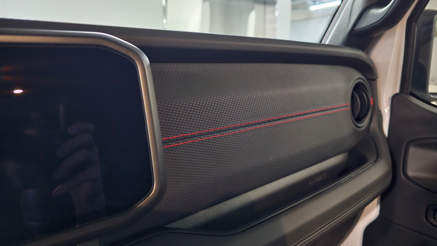 루비콘은 대시보드 블랙 가죽 레드 스티치 마감